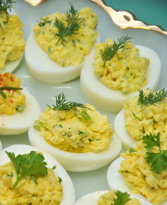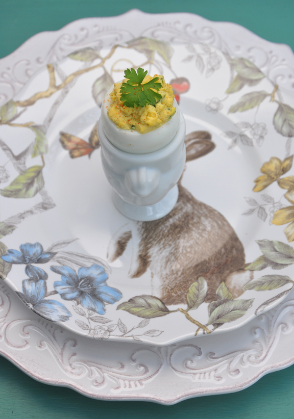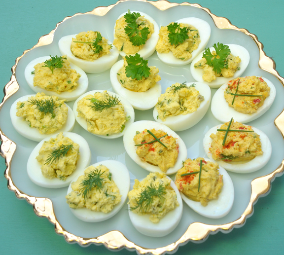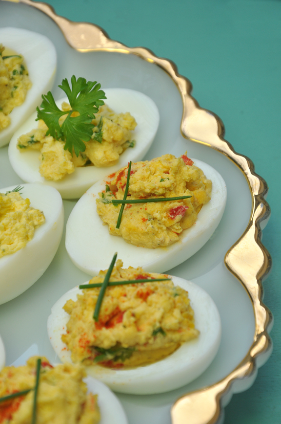 Prepare 2 dozen eggshells to be used as serving cups (see sidebar for instructions). Place in serving cups and set aside.