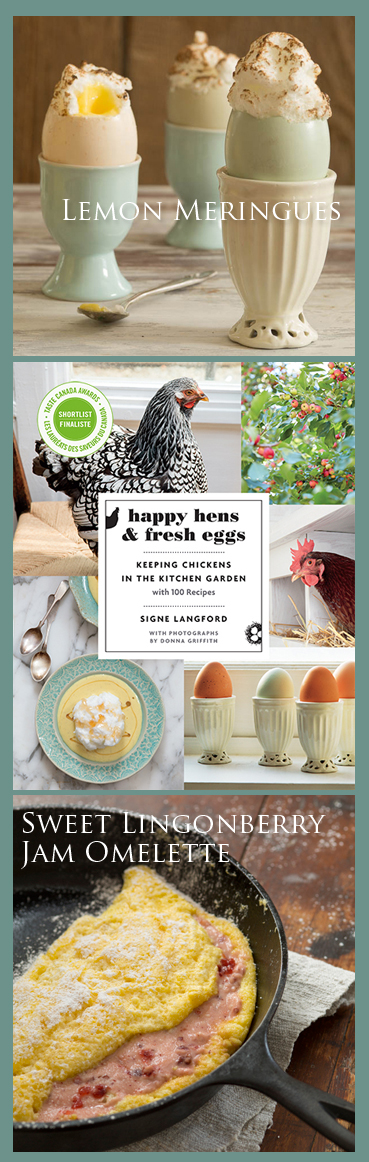 From the book Happy Hens & Fresh Eggs: Keeping Chickens in the Kitchen Garden – with 100 Recipes, ©2015, by Signe Langford, Photography by Donna Griffith. Published by Douglas & McIntyre. Reprinted with permission of the publisher.